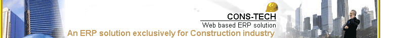 Cons–Tech is a Marvelous user friendly Construction and Buildings ERP software solution which has been developed after in depth analysis of the needs and requirements of the construction and buildings business owners to increase the efficiency of the entire system It is a complete suit of integrated modules for the overall automation of the construction and buildings industry.